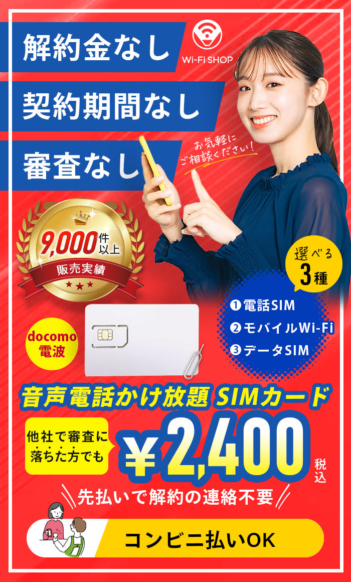 Wi-Fi SHOPでは、手軽に使えるSIMカードとモバイルWi-Fiをお届けしています。契約期間や解約金、ローンの心配は一切なし。使ってみて気に入ったら、そのまま自由に続けられます。お支払いは同封のカード番号で簡単にコンビニ払いができ、先払い方式だから、使わなくなった時はそのまま解約もOKです。便利で安心なサービスを、ぜひお試しください。快適な通信環境をお楽しみいただけます!