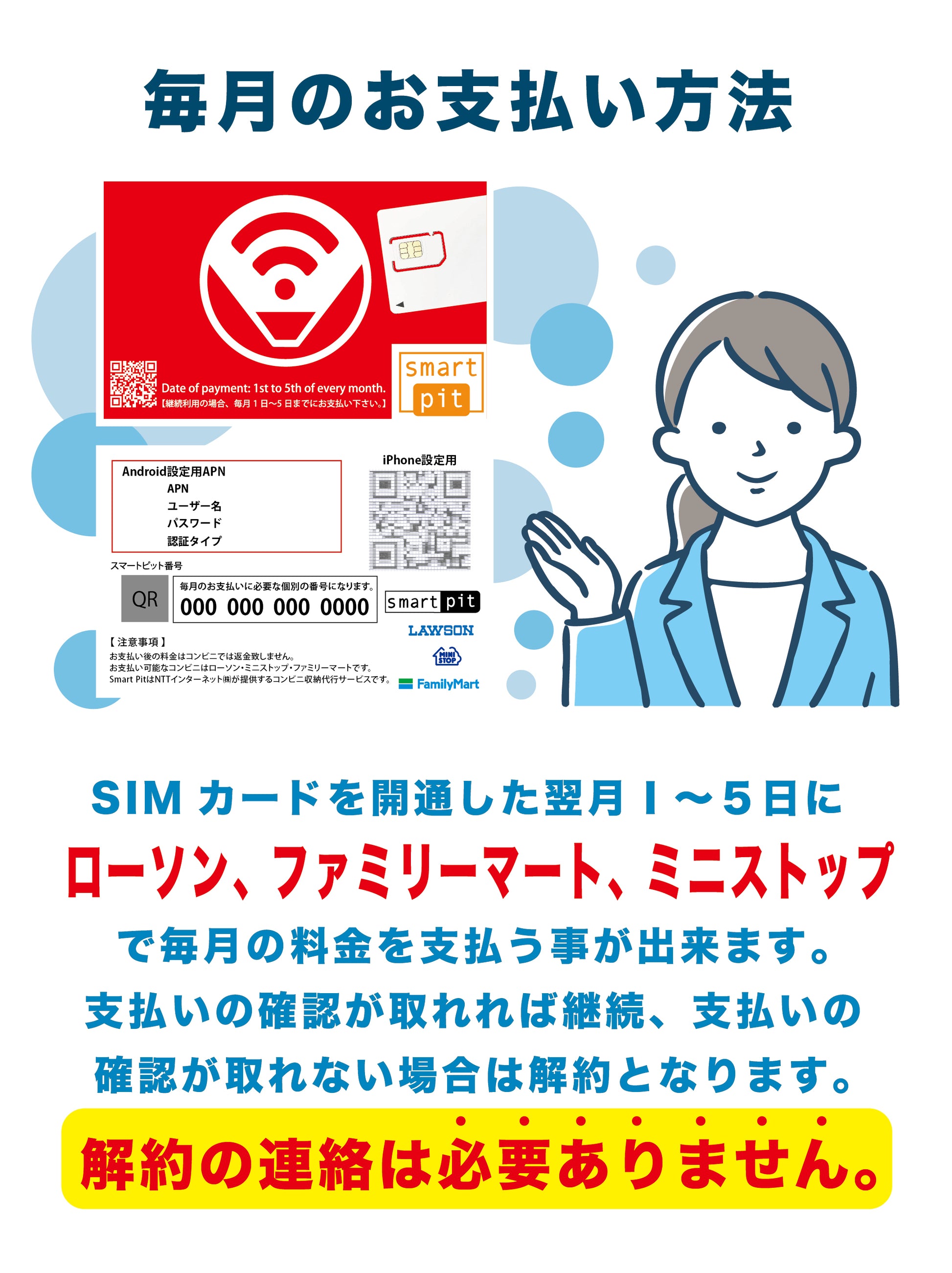- 9日23時50分までにお支払いが確認できない場合:SIMカードは 自動解約 となります